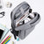 - The backpack has a front zipper pocket for the ID card, Sanitizer, House keys, Pen. First compartment with pockets for the earphones, pens, notebook, Fitness Band. Spacious second compartment for all your electronics.